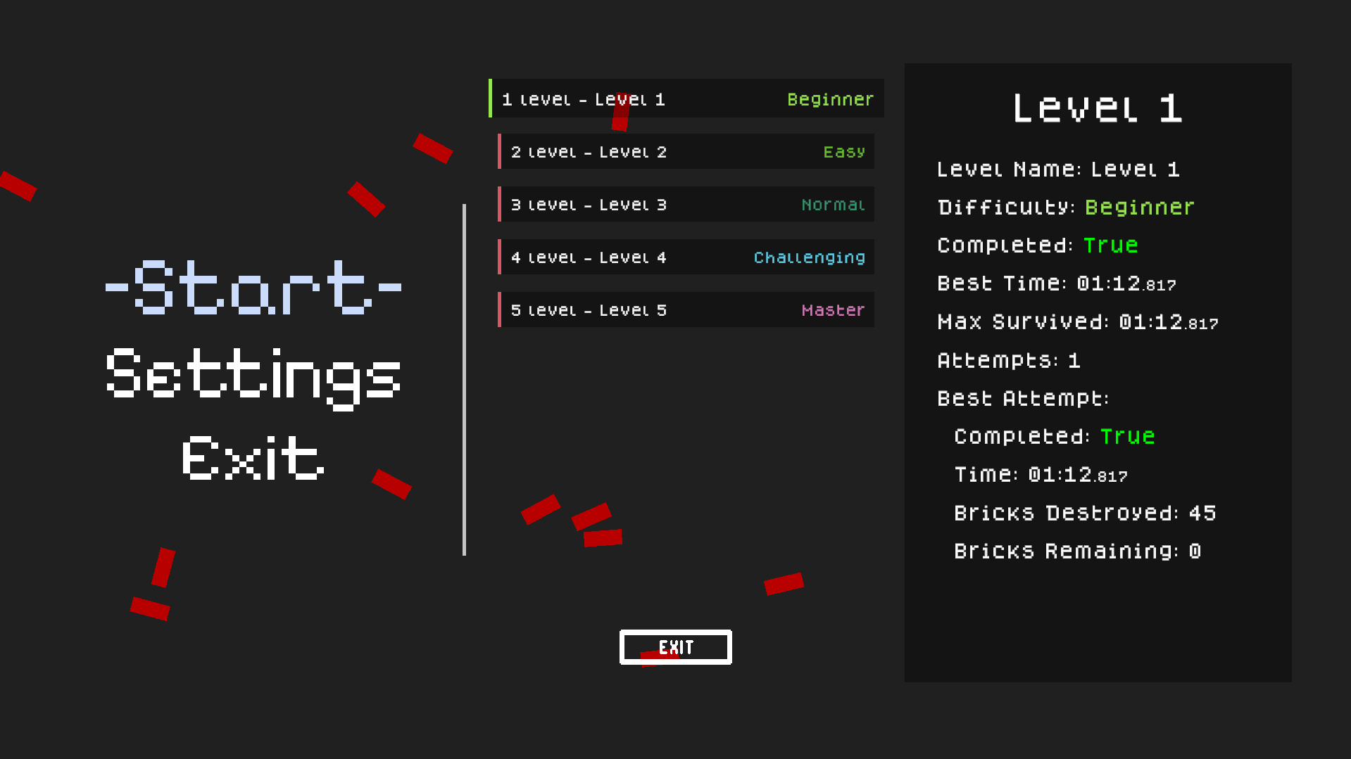 Подсчёт очков и статистика прохождения.